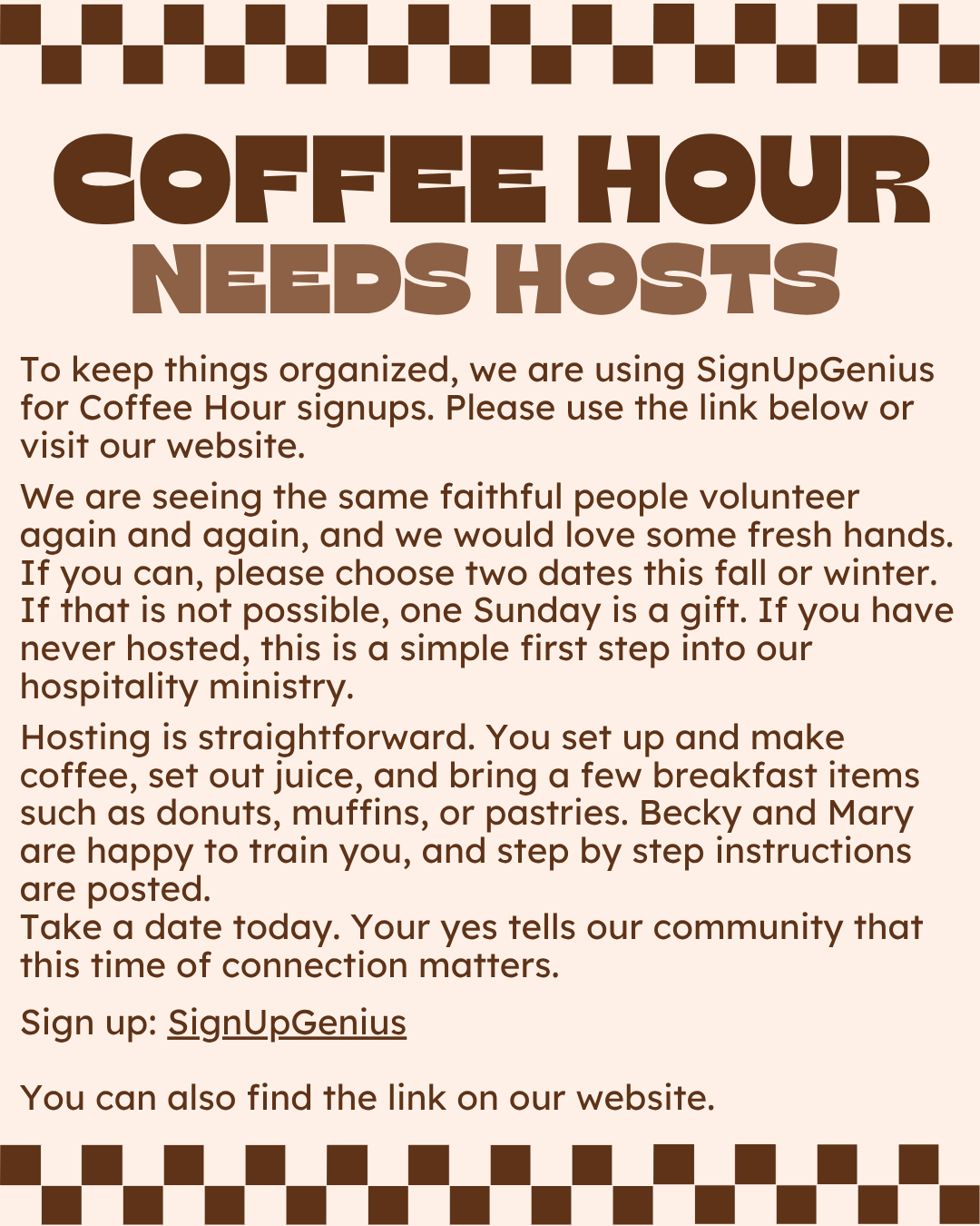 Deprecated: Methods with the same name as their class will not be constructors in a future version of PHP; plgSystemAddPrintStylesheet has a deprecated constructor in /home/djxcbosu/public_html/plugins/system/addprintstylesheet/addprintstylesheet.php on line 17 Coffee Hour Needs Hosts!