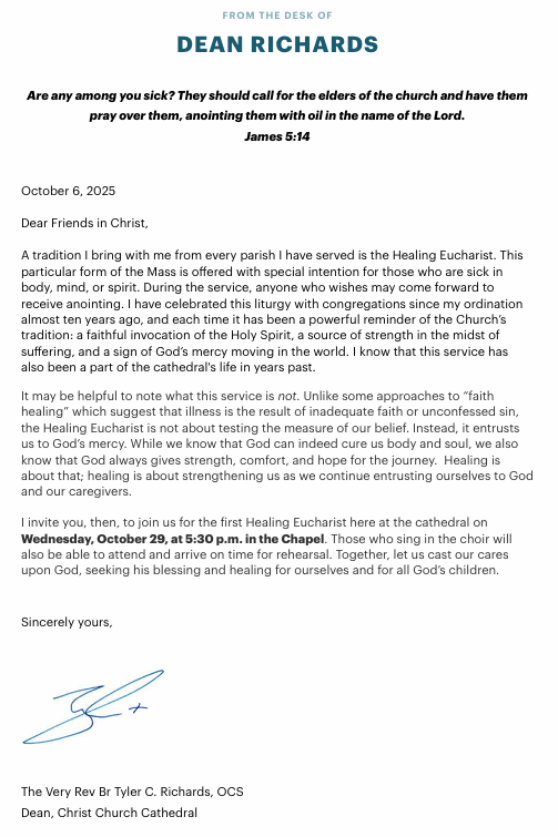 Join us for the Rite II Holy Eucharist Service with The Very Reverend Brother Tyler C. Richards, OCS, at 9 a.m. at the Cathedral, or watch this service livestream via Zoom (instructions & link below) or on our Facebook page (to find us on Facebook type in @cathedralec).
