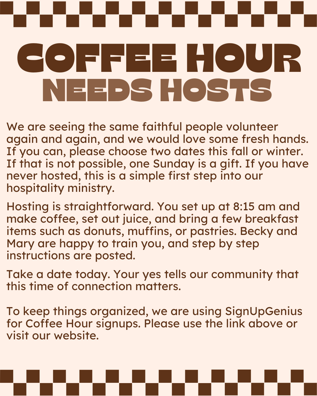 Deprecated: Methods with the same name as their class will not be constructors in a future version of PHP; plgSystemAddPrintStylesheet has a deprecated constructor in /home/djxcbosu/public_html/plugins/system/addprintstylesheet/addprintstylesheet.php on line 17 Coffee Hour Needs Hosts!