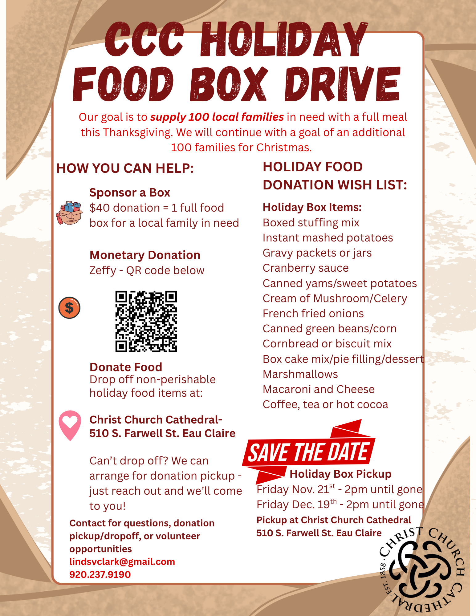 We're excited to launch a new ministry this season: Holiday Food Box Drive!