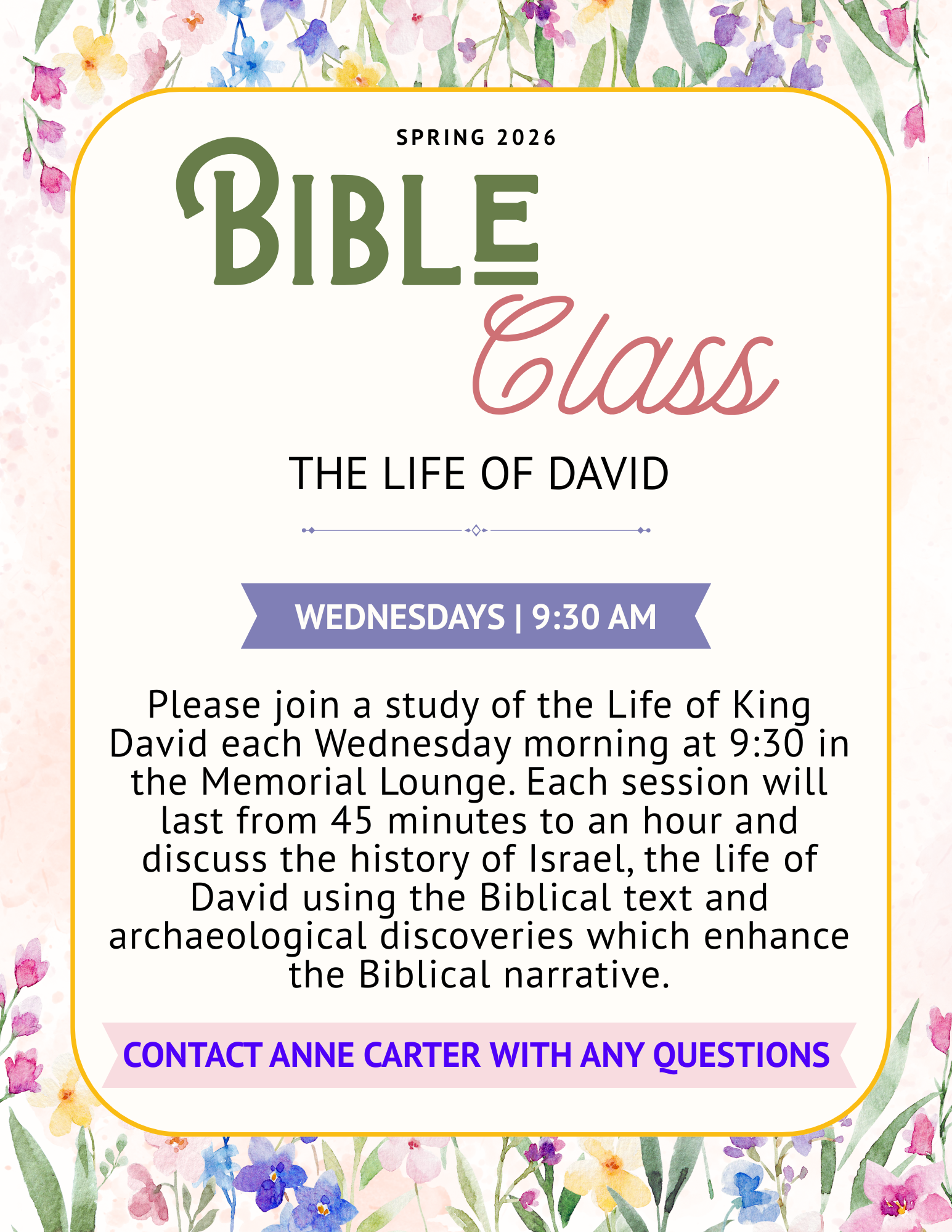 Bible class will begin on Wednesday, February 25th.