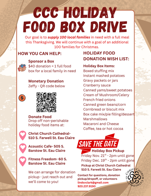We're excited to launch a new ministry this season: Holiday Food Box Drive!