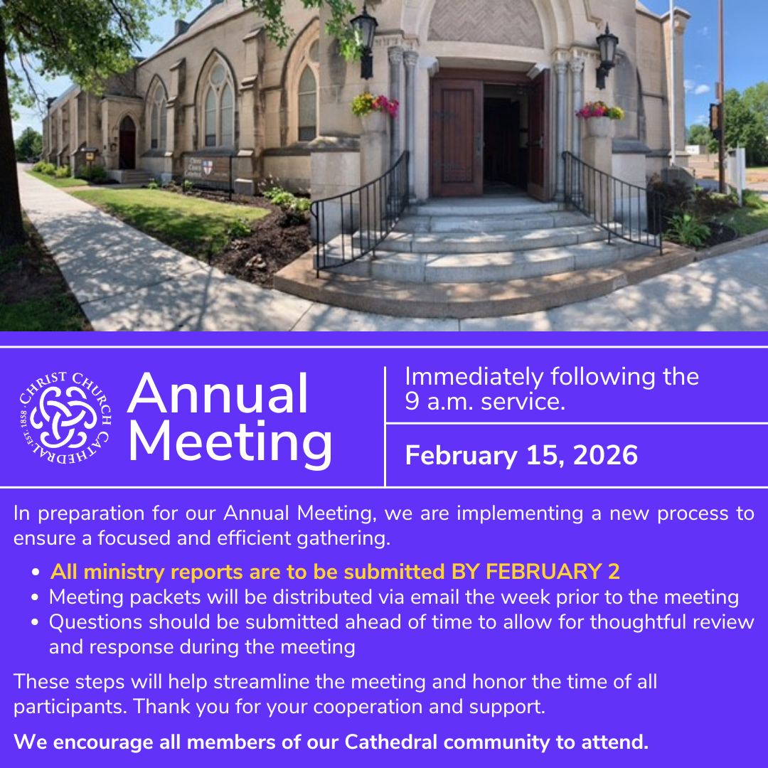 Join us for the Rite II Holy Eucharist Service with The Reverend Peter Jonas, at 9 a.m. at the Cathedral, or watch this service livestream via Zoom (instructions & link below) or on our Facebook page (to find us on Facebook type in @cathedralec).