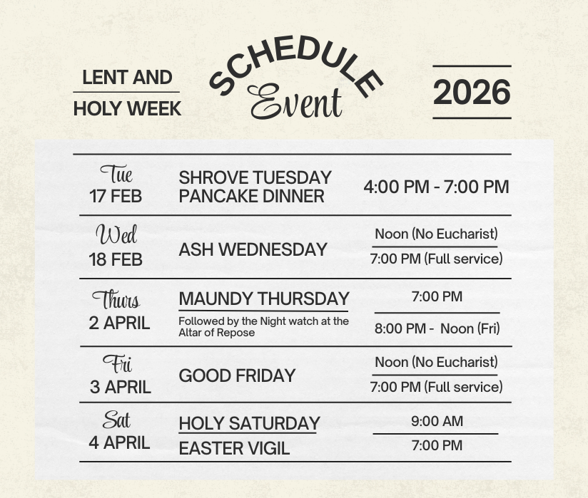 Holy Days – Eucharist as announced in the Weekly Update